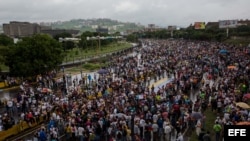 Dos personas murieron el lunes en una jornada de protestas en Venezuela, durante la cual miles de venezolanos tomaron la principal autopista de Caracas por horas.